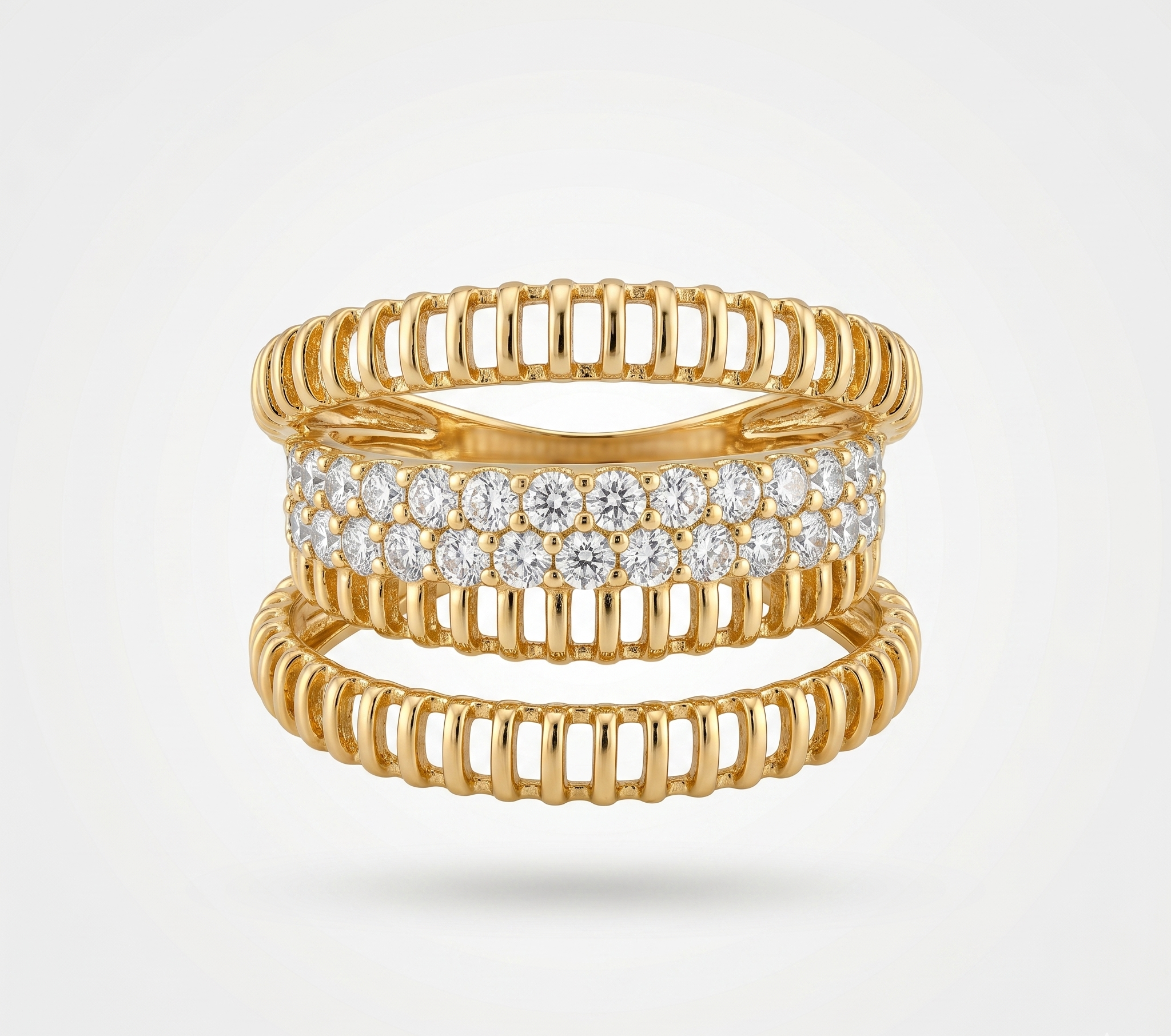 Anillo «Catedral» de Triple Banda en Oro 18k y Diamantes