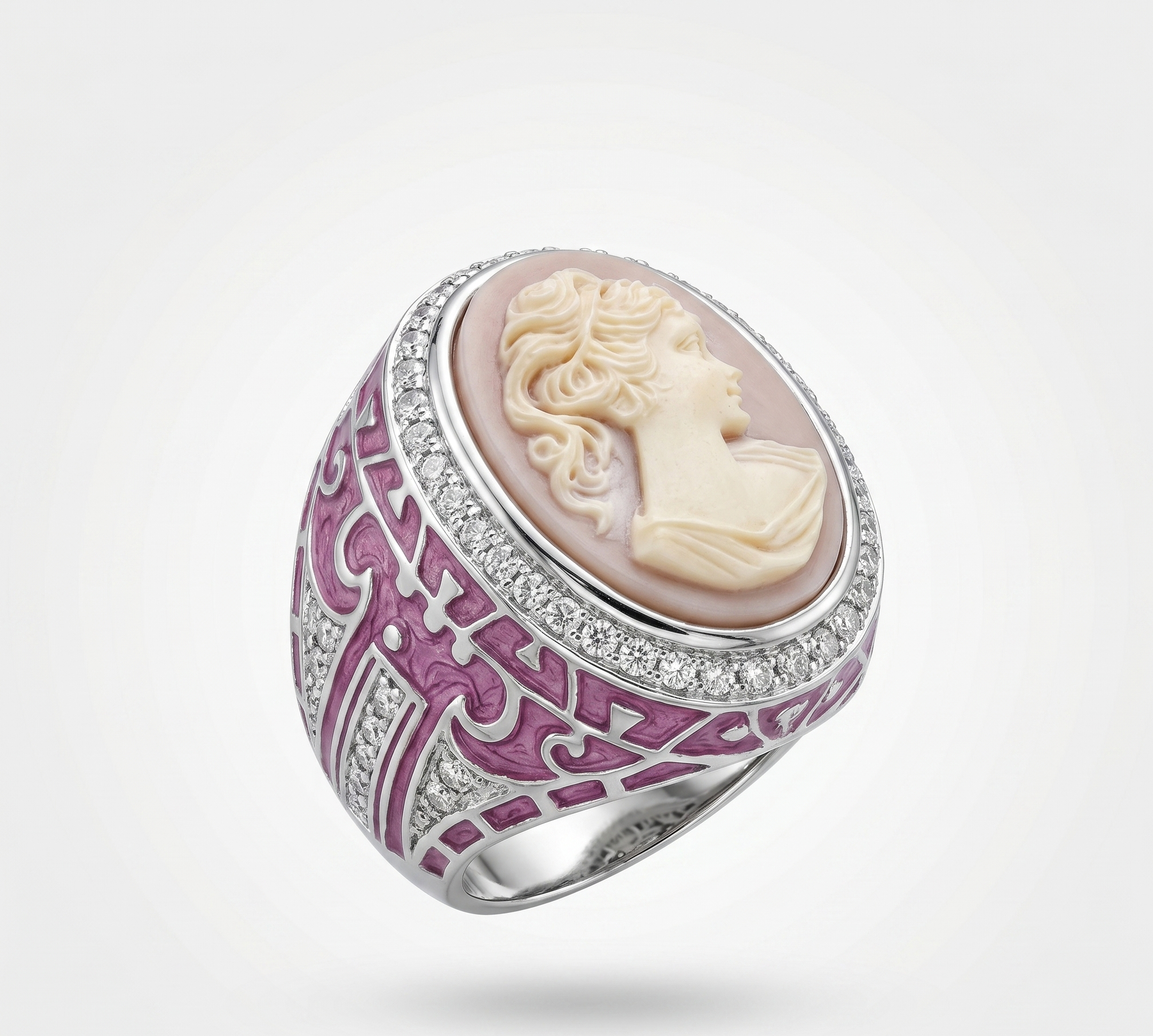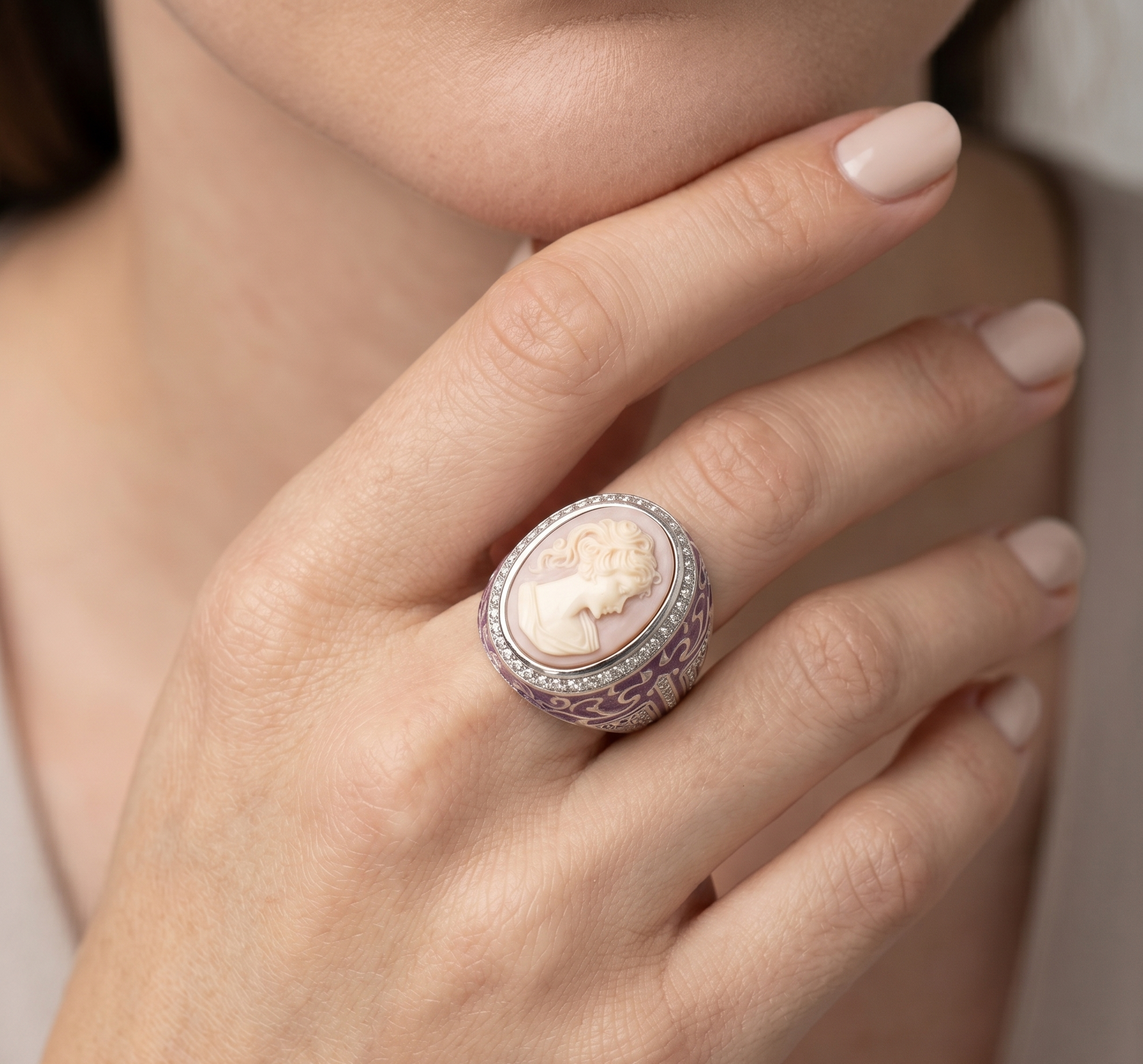 ANILLO CAMEO IMPERIAL EN PLAYA Y ESMALTE PURPURA