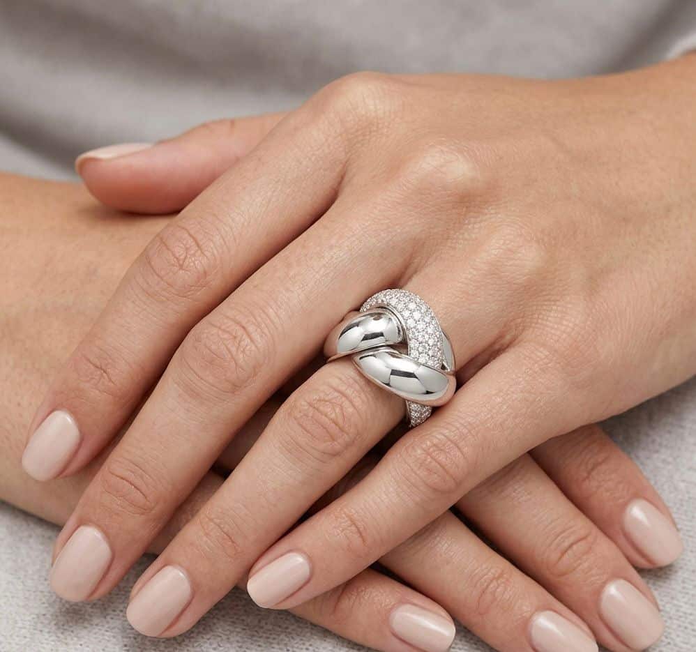 Diseño: Estilo de nudo escultórico con pavé brillante.