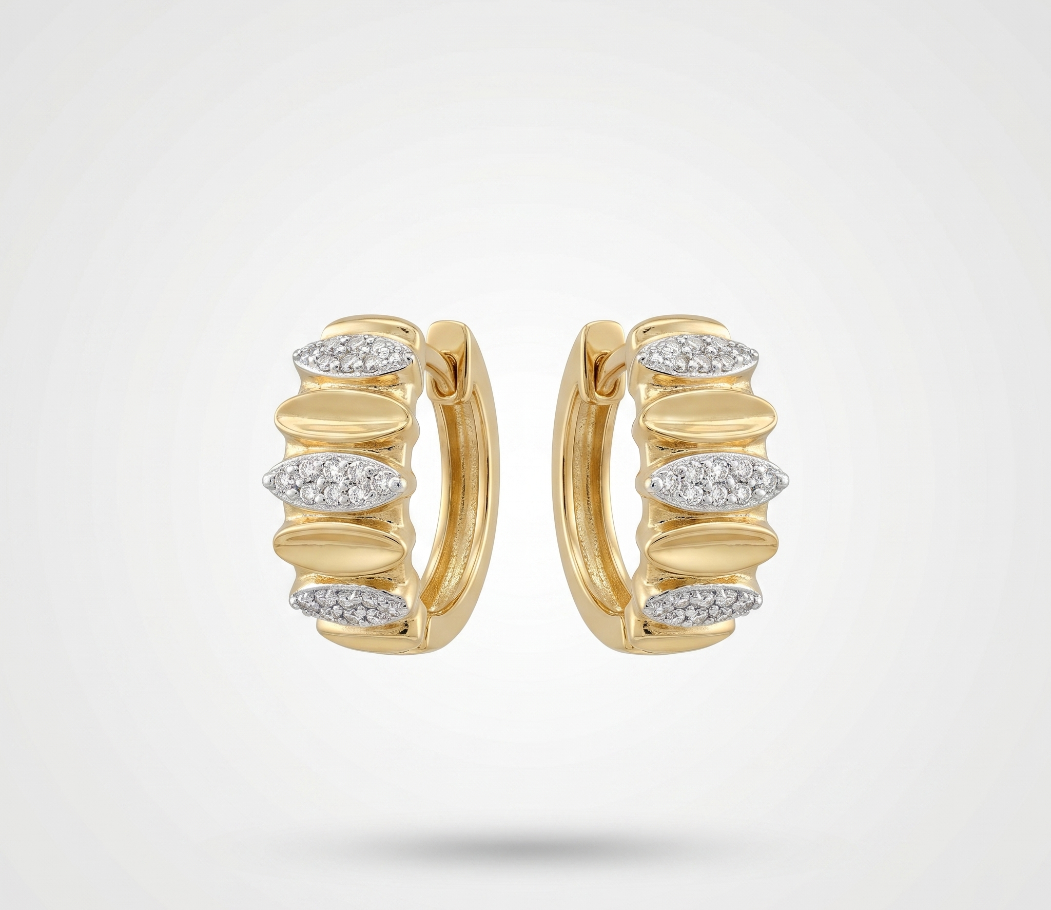 Con un peso total de oro de 4.41 gramos y un quilataje de diamantes de 0.19 ct, estos pendientes poseen la robustez necesaria para perdurar generaciones, manteniendo una ligereza que garantiza comodidad absoluta durante todo el día. Su cierre de bisagra integrado ofrece una silueta impecable y una seguridad superior, permitiendo que la joya se ajuste de forma natural al lóbulo de la oreja.
