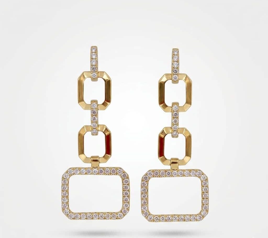 Aretes 18k & diamantes cuadrados largos