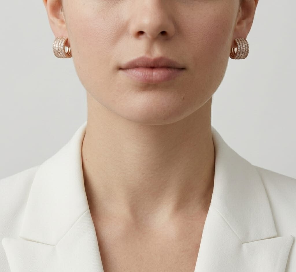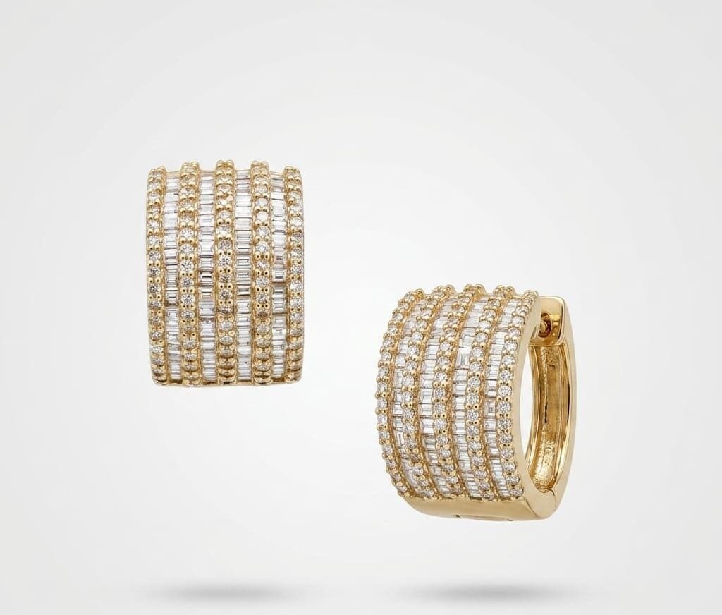 • Diseño: Aretes tipo argollas anchas con 5 filas de pavé alternado.