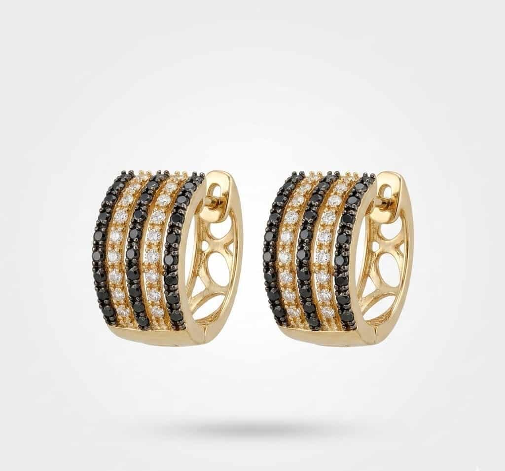 Aretes tipo Argollas de Oro 14K con Diamantes Negros y Blancos | Joyería Fina