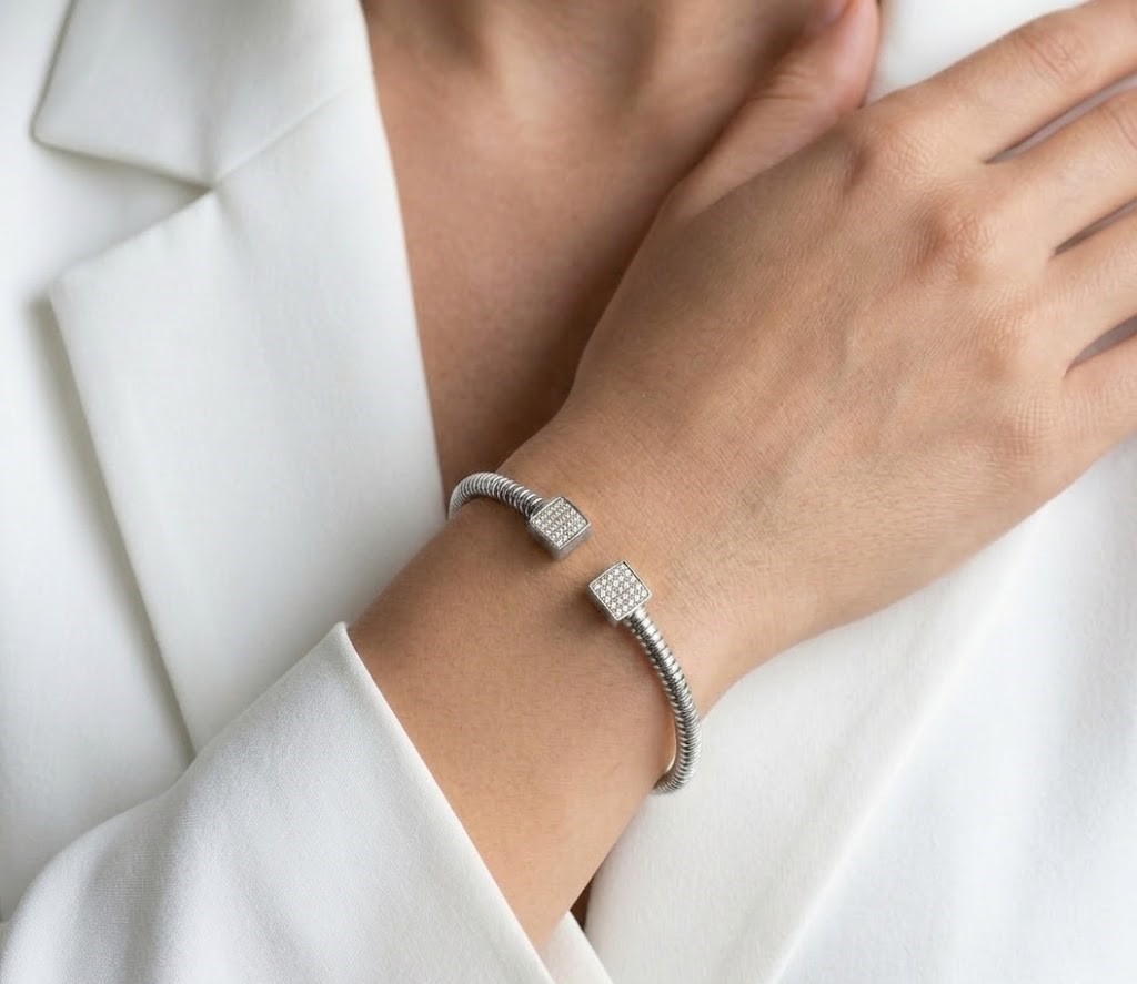 • Estilo Open Cuff: Su diseño abierto facilita el uso diario y permite un estilo versátil, ideal para lucir sola o en conjunto con otras piezas.